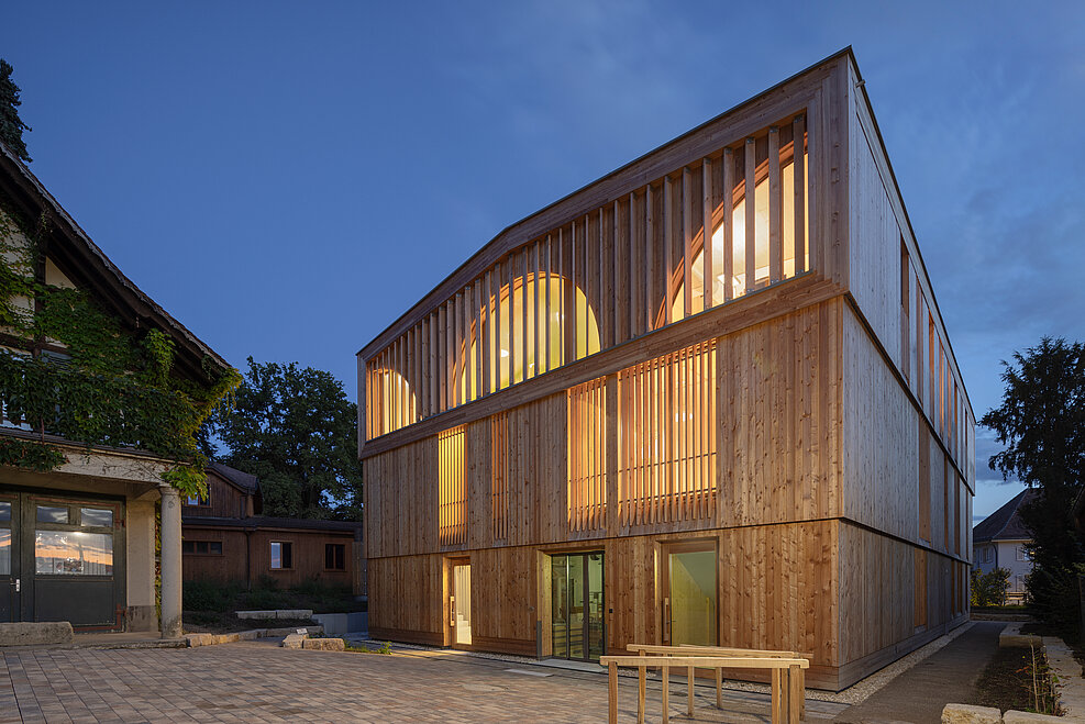 Die Massivholzbauten entstanden und entstehen in Partnerschaft zwischen 9grad architektur und BSS Architekten. Der Standort soll in den kommenden Jahren zukunftsfähig umgestaltet werden. Um Platz für den Klinikneubau zu schaffen, wurde ein Ersatzneubau für das Heilmittellabor errichtet. Dieser Bau war der Auftakt für die weitere Entwicklung, die der bestehenden Tradition eine neue Identität und Dynamik verleihen soll. Wie diese Bauweise und die anthroposophische Ausrichtung der Klinik mit den modernen Anforderungen eines Labor- und Bürogebäudes zusammengehen, erfahren wir während der Führung.