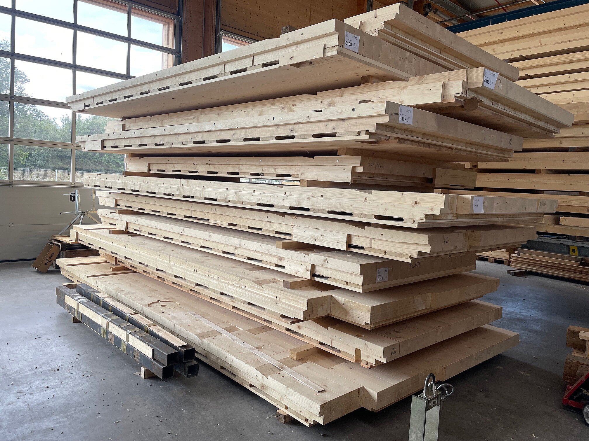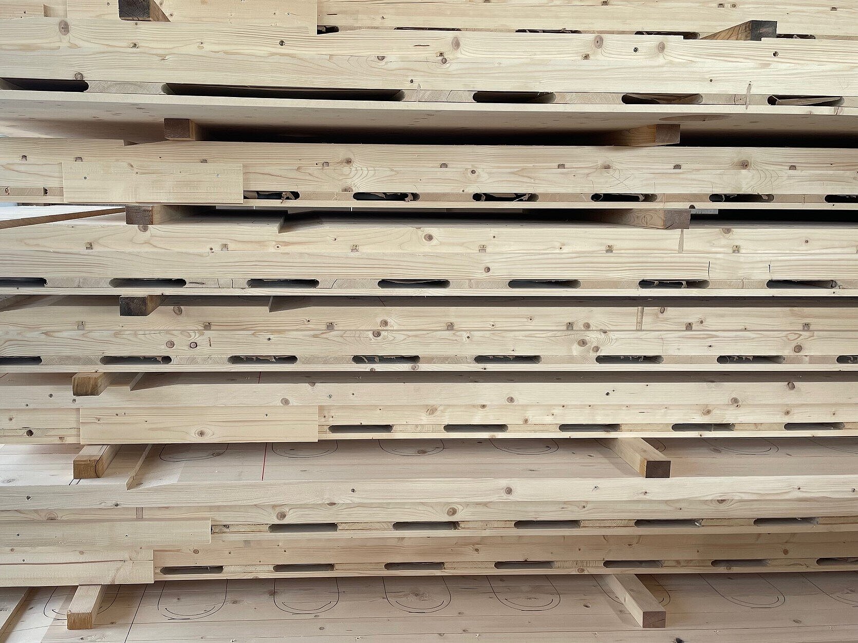 Für das gesamte Projekt H4H Klinik Arlesheim werden etwa 2.000 m³ Mondholz verwendet. Allein 1.200 m³ davon sind für die Stützen in der Klinik erforderlich. Im vergangenen Frühjahr besuchten unsere Kollegen von BSS Architekten die Wälder, um beim Fällen der Bäume dabei zu sein. Nun ist es endlich so weit, dass die ersten massiven Holzwände und -böden von Holz100 produziert wurden. Diese werden noch in diesem Monat vor Ort montiert. Wir freuen uns auf einen reibungslosen Bauprozess!