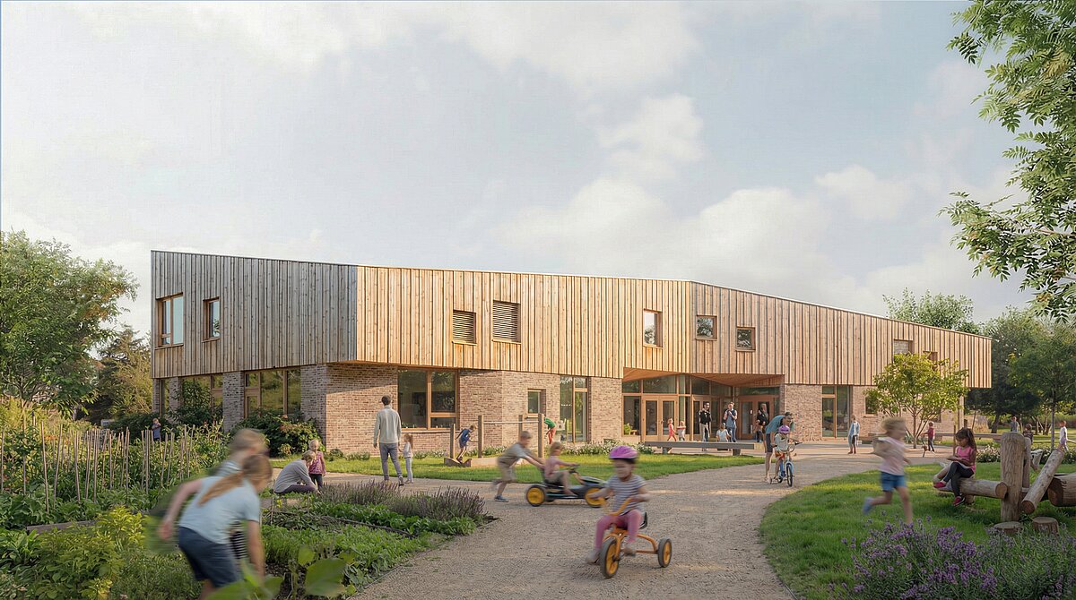 Die Freie Waldorfschule Oosterwold teilt sich zusammen mit der benachbarten öffentlichen Grundschule ein sechs Hektar großes Grundstück, von dem ein großer Teil für urbane Landwirtschaft vorgesehen ist. Kinder können sich draußen bewegen, lernen und im Schulgarten arbeiten. Neben den Schulen entsteht eine gemeinsam genutzte Sporthalle nach einem Entwurf von Maas Kristinsson Architecten. Beide Schulen und die Sporthalle sind wie Gebäude auf einer landwirtschaftlichen Hofanlage angeordnet, rund um einen gemeinsamen zentralen Platz mit Sport- und Spielelementen. In der Freien Waldorfschule Oosterwold ist die Beziehung zwischen Innen- und Außenraum ein wesentlicher Bestandteil des Unterrichts; so hat jede Klasse im Erdgeschoss eine Erschließung nach draußen.