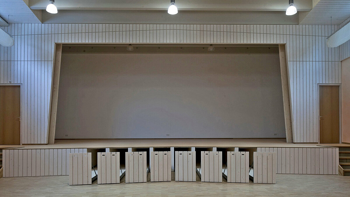 Das Gebäude verfügt über eine Wärmepumpe zur Kühlung des Gebäudes. Es gibt ein Niedertemperatur-Heizsystem (LTV) durch Fußbodenheizung und -kühlung in der Aula und den Fluren. Das gesamte verwendete Holz hat ein FSC-Gütesiegel, und die Fassadenrahmen sind aus einheimischer Lärche gefertigt. In den Akustikdecken wird Flachsschurwolle als Dämmstoff verwendet. Der Energieverbrauch wird durch viel natürliches Tageslicht und energieeffiziente Hochfrequenz-Beleuchtung mit Anwesenheits- und Tageslichterkennung minimiert.
