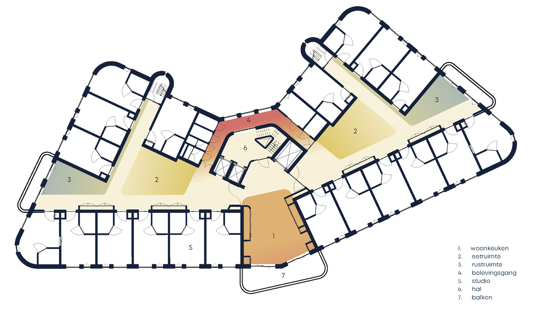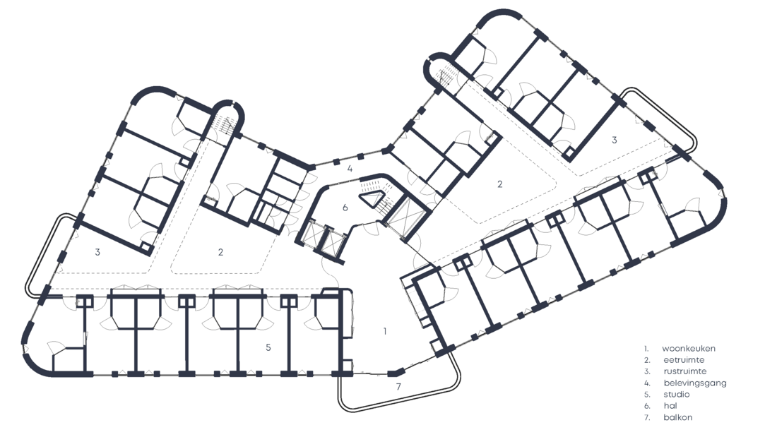 In diesem Entwurf für das Wohnpflegehaus Krakelingweg soll das visionäre Wohnkonzept des Auftraggebers für das Pflegeheim der Zukunft umgesetzt werden. Das sich wandelnde Gesundheitswesen fordert neue und zukunftssichere Antworten für die Gesundheitsversorgung. Dazu gehört auch ein den Alltag der Bewohner unterstützendes Wohnumfeld. Die Bewohner werden nicht als Patienten, sondern als Menschen mit persönlicher Lebensgeschichte und individuellen Bedürfnissen gesehen. 9grad architektur hat das Wohnkonzept für den Entwurf des Neubaus des Pflegeheims Leendert Meeshaus umgesetzt. Diese Einrichtung leistet Pflege auf Grundlage anthroposophischer Inspiration.
